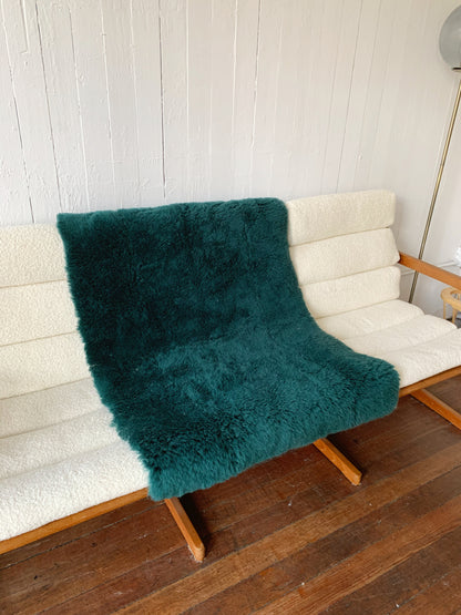 The fabric used in our products is a combination of wool fibre (sheared off the sheep), a nylon grid and a medical grade acrylic liquid stabilizer. It is made using a process that takes the loose wool and ‘knits’ it into the nylon grid. Then, the acrylic is used to stabilize the wool in place and create a flat surface by which the fabric can be cut. This results in a material that has the look of a sheepskin, without the hide of the animal. As a result, the wool is machine washable.